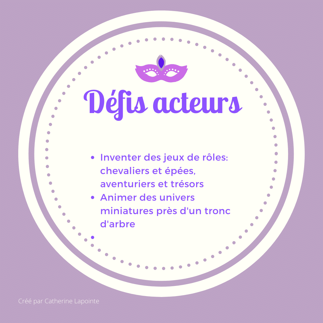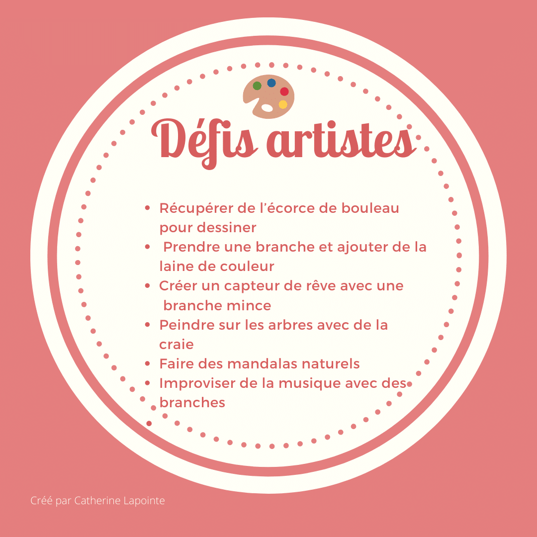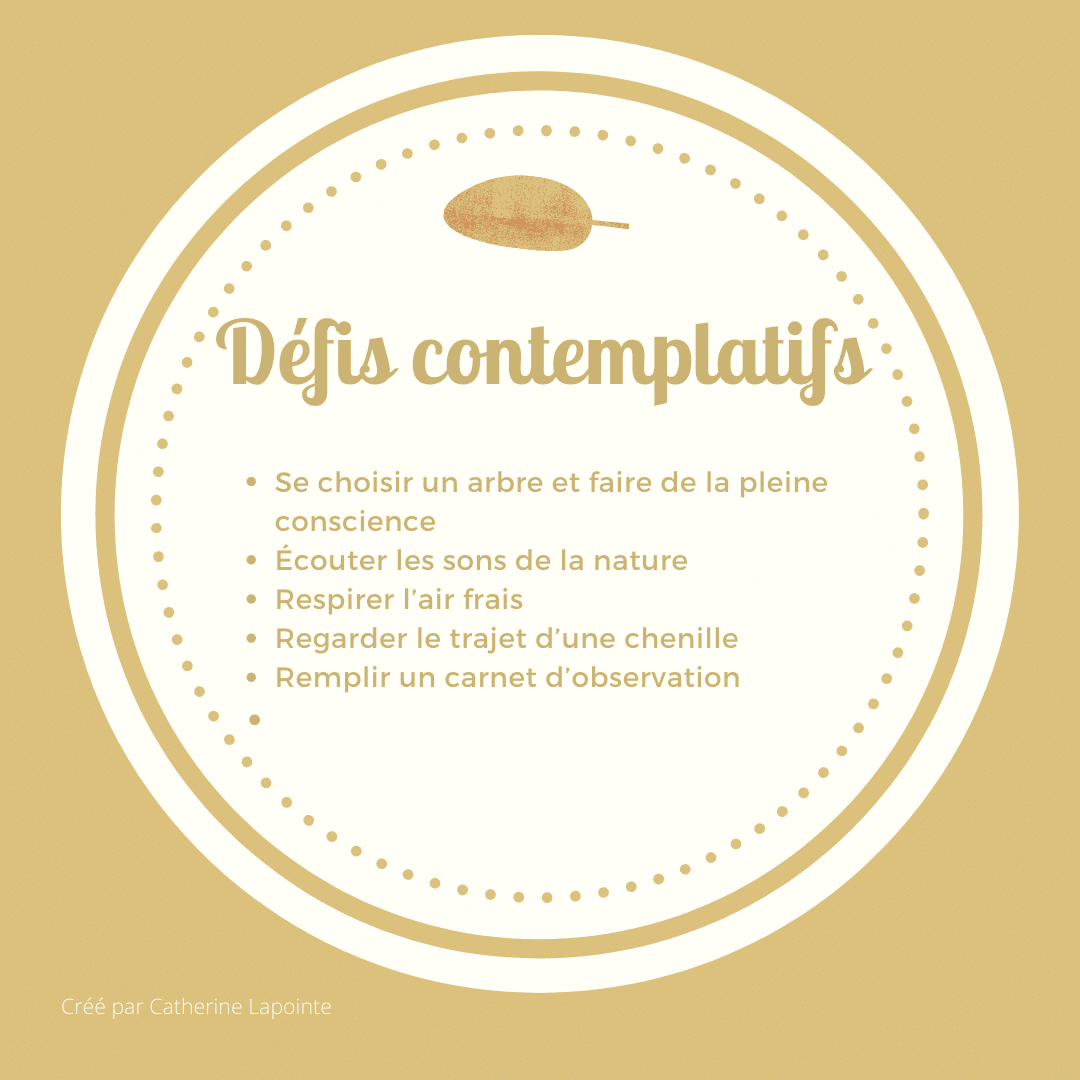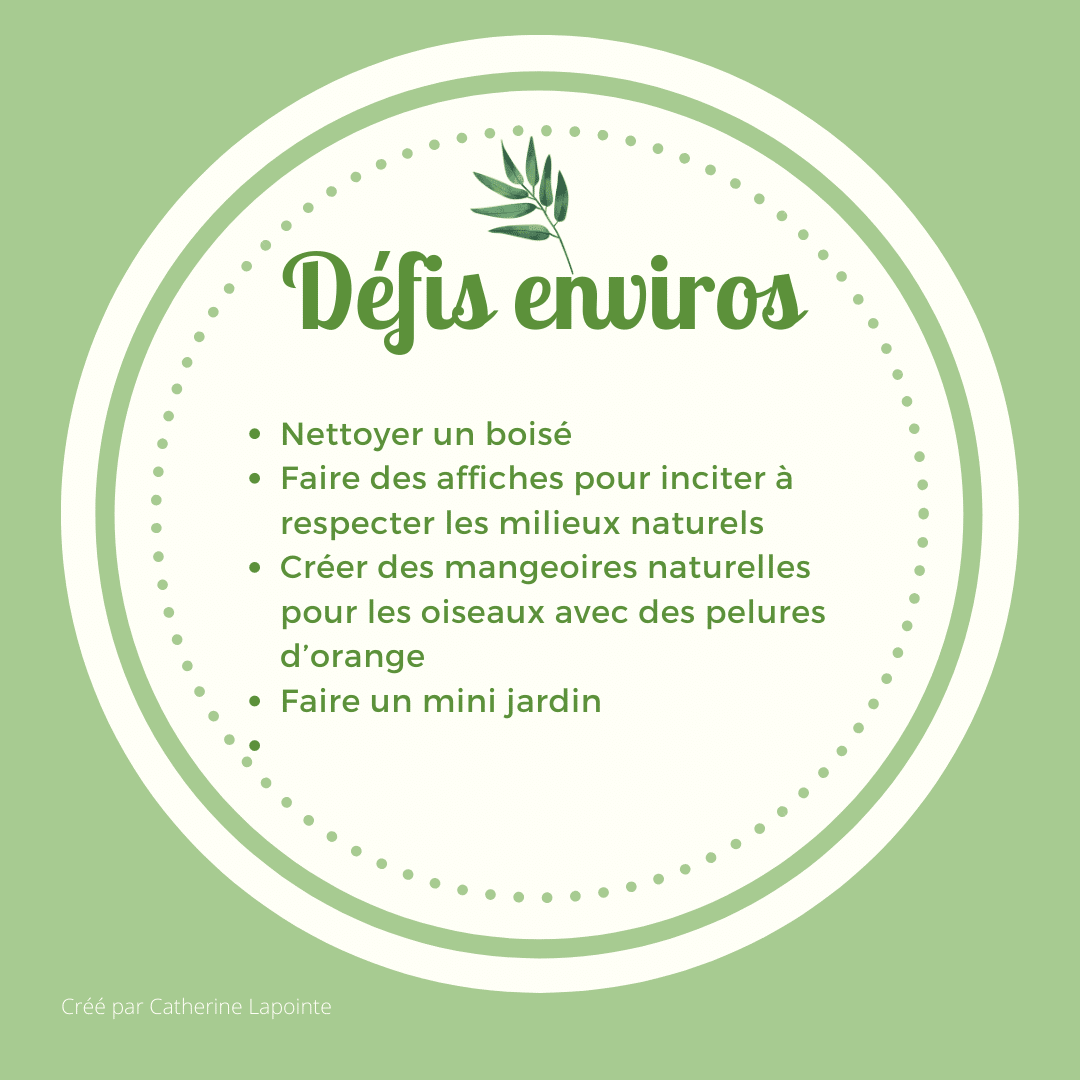 Voici donc 30 Défis Nature pour accompagner les élèves qui retourneront à l’école, ou encore pour ceux qui feront l’école à la maison. Je les partage avec vous. Nous avons tous besoin de nous enraciner, d’appartenir à notre milieu et d’apprendre grâce à lui!