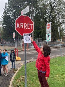 Cette marche favorise les rencontres avec les gens de la communauté. Avant la marche, les élèves rédigent des questions d’entrevue à poser à des gens du quartier. Par la suite, ils marchent dans le voisinage afin d’échanger avec les gens. C’est l’occasion de se familiariser avec différents accents et de pratiquer sa communication orale.