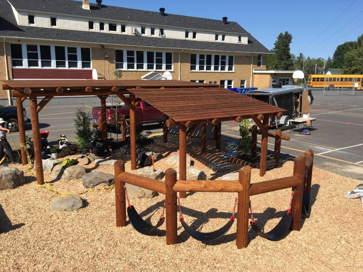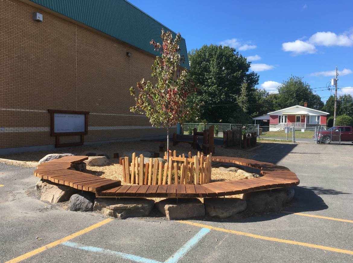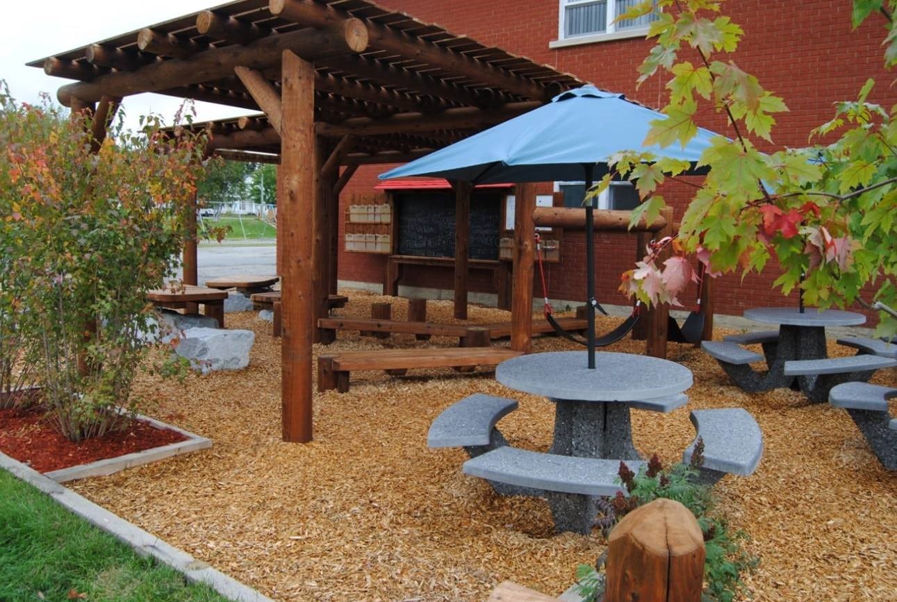 - Aménagé stratégiquement dans la cour d’école, ce lieu permet de donner un espace de repos et de socialisation.