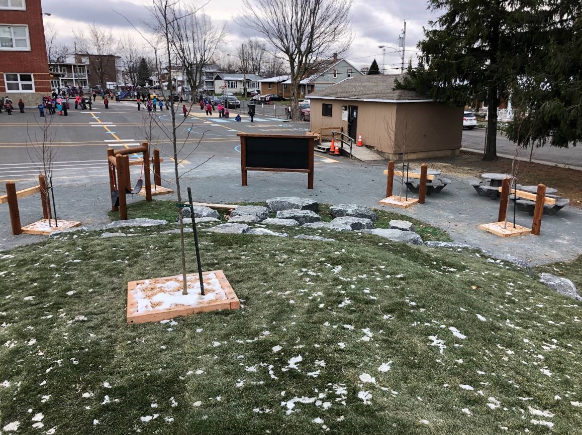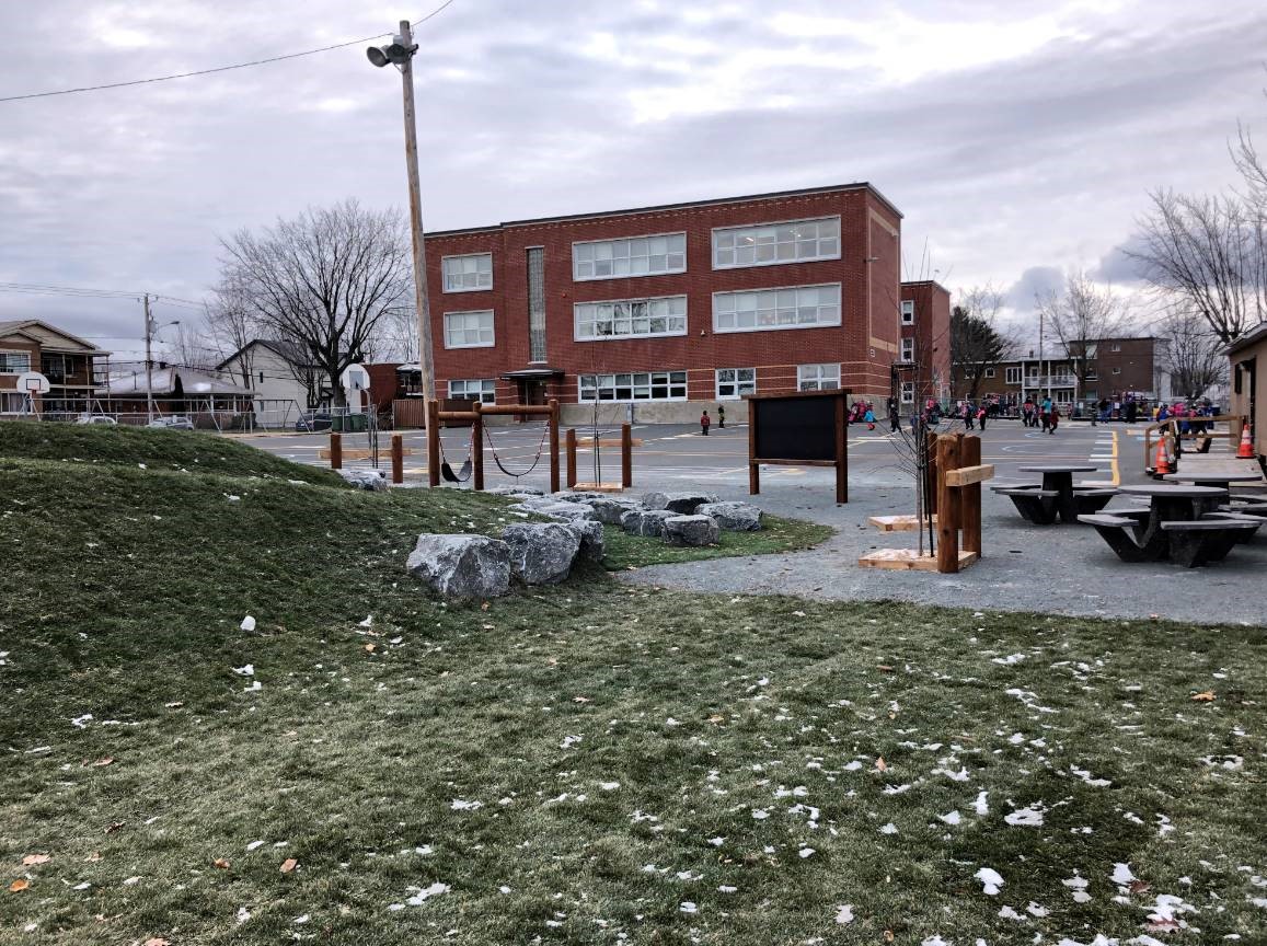 Petit conseil : les toiles d’ombrages font design et permettent une variété de coloris, j’en conviens, mais elles demandent une installation au printemps et un démantèlement à l’automne. Ce travail doit être fait avec soin et demande du personnel qualifié, souvent peu disponible dans les écoles. Pensez-y!
