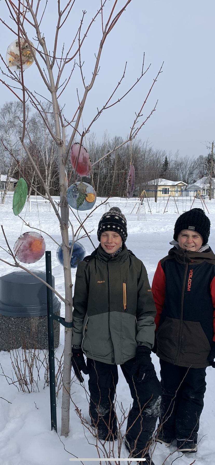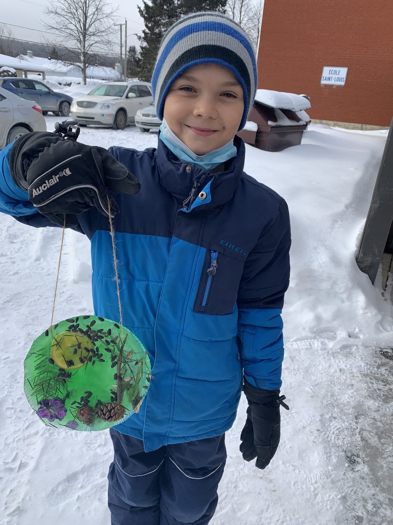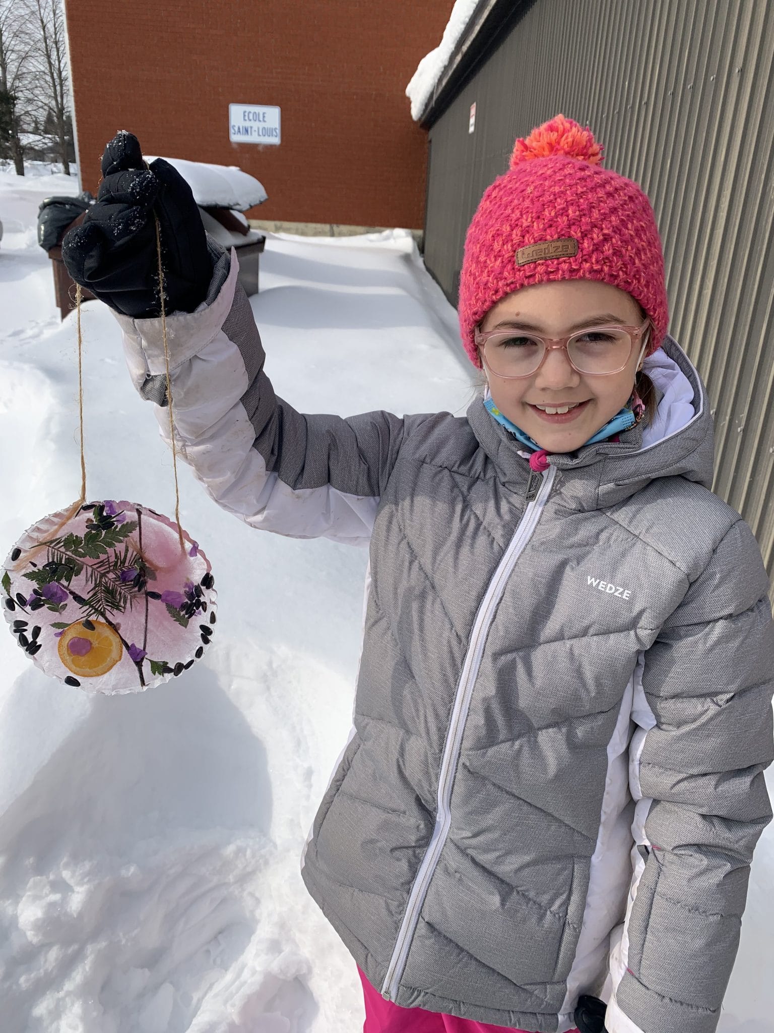 Possibilité d’ajouter des graines de tournesols noires et des petits fruits pour essayer d’attirer quelques oiseaux dans la cour d’école.