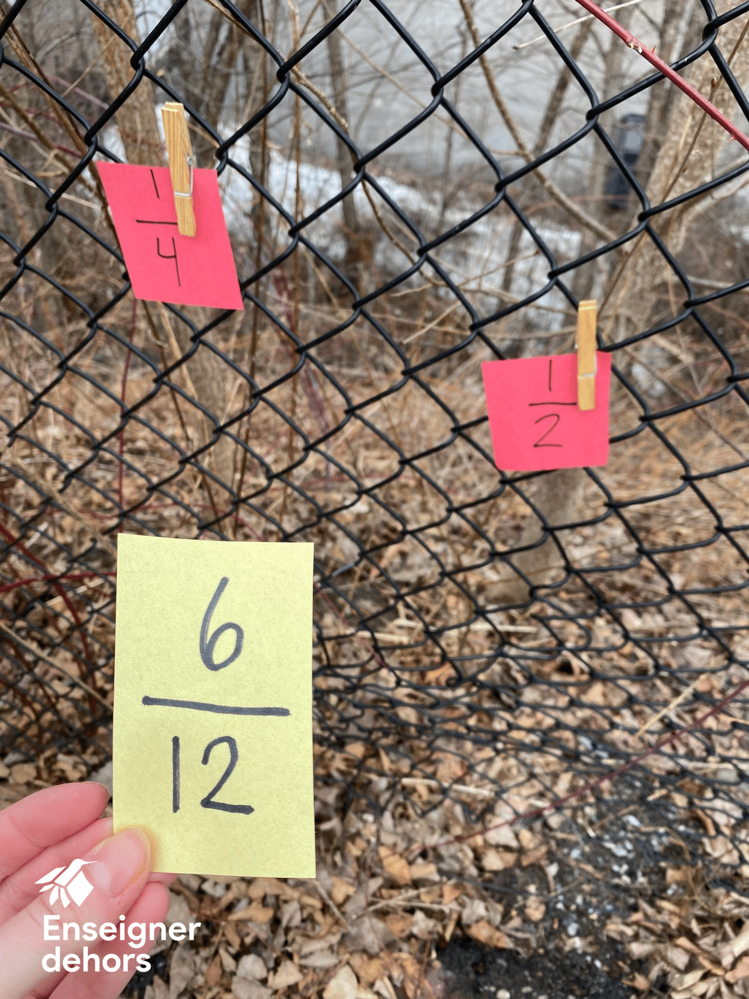 - Cacher sur la cour d’école des cartes avec des fractions écrites dessus, réduites à leur plus simple expression.