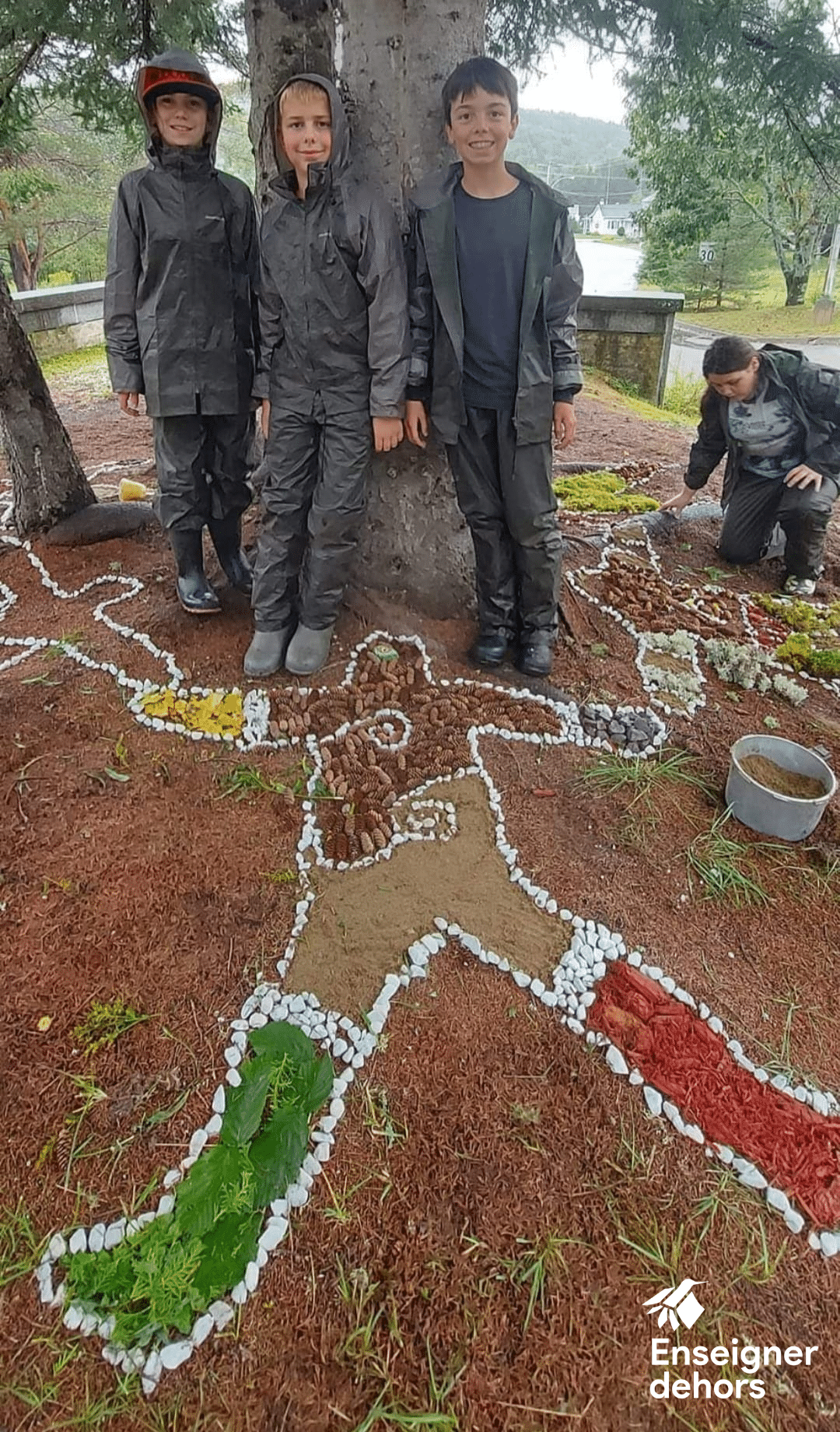 - Amener l’idée de créer une œuvre d’art nature qui représente la coopération, une valeur que nous voulons mettre de l’avant dans notre classe.