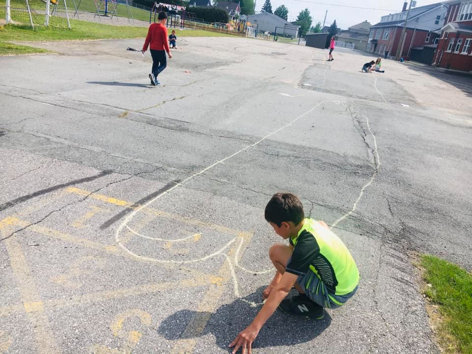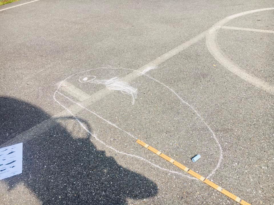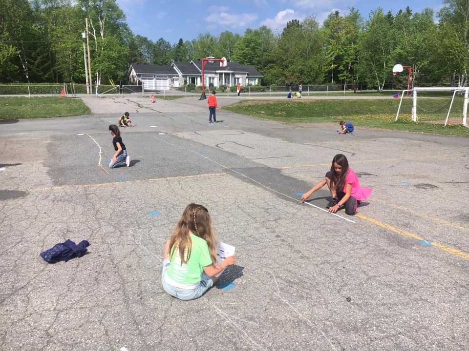 En science, faire une recherche sur les baleines du Québec. Demander aux élèves de choisir une espèce de baleine. Sortir à l’extérieur pour reproduire à la craie la taille réelle la baleine choisie.