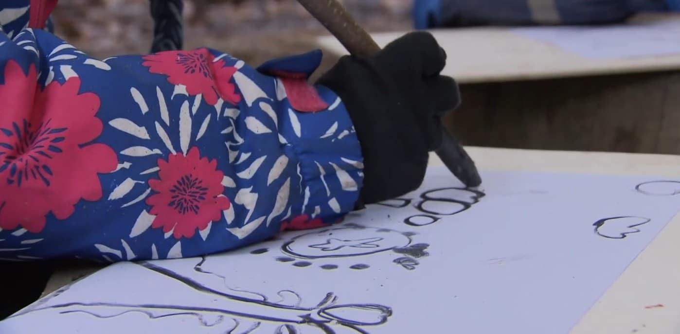Il s’agit de fabriquer un crayon avec une branche. Il faut faire une pointe et placer celle-ci dans la flamme pour ensuite écrire ou dessiner avec la pointe noircie. Pour le fusain, il est vraiment facile de le fabriquer soi-même aussi.