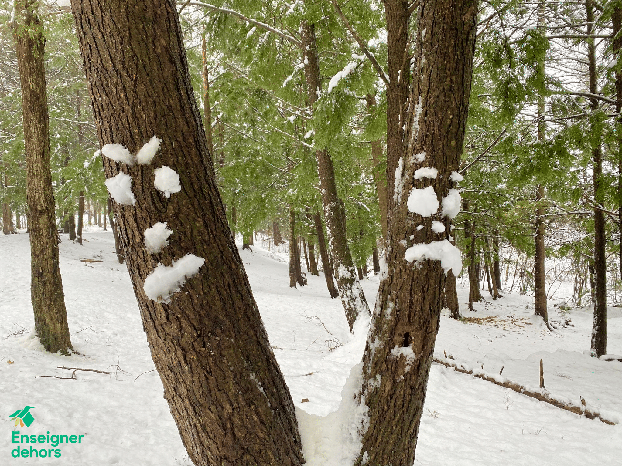 - 2 versions: 1-À l’aide d’argile ou de neige collante réaliser un visage représentant l’émotion sur les arbres. 2-Découper et afficher des images de visages (voir document matériel) ou dessiner les visages à coller sur les arbres.