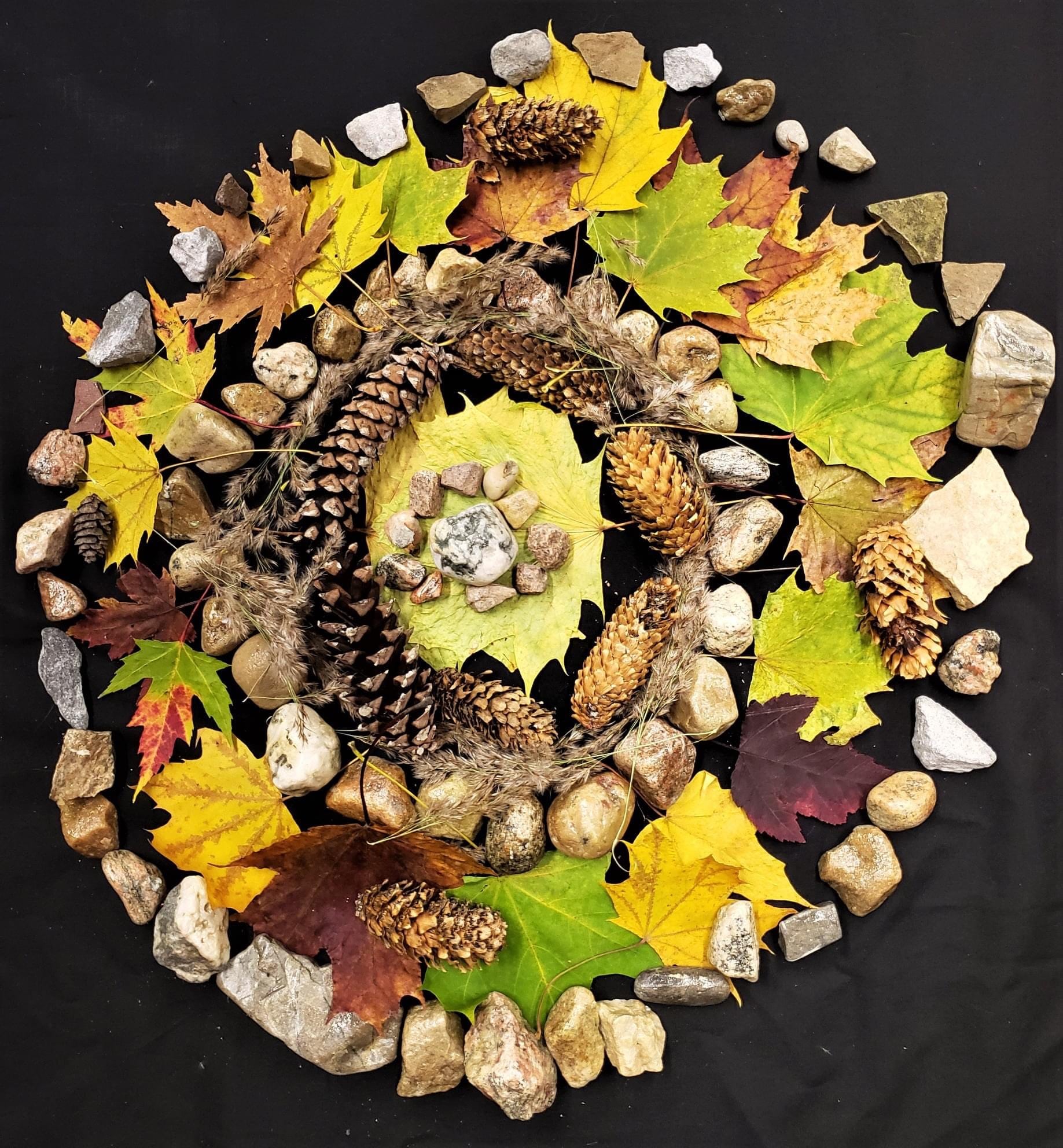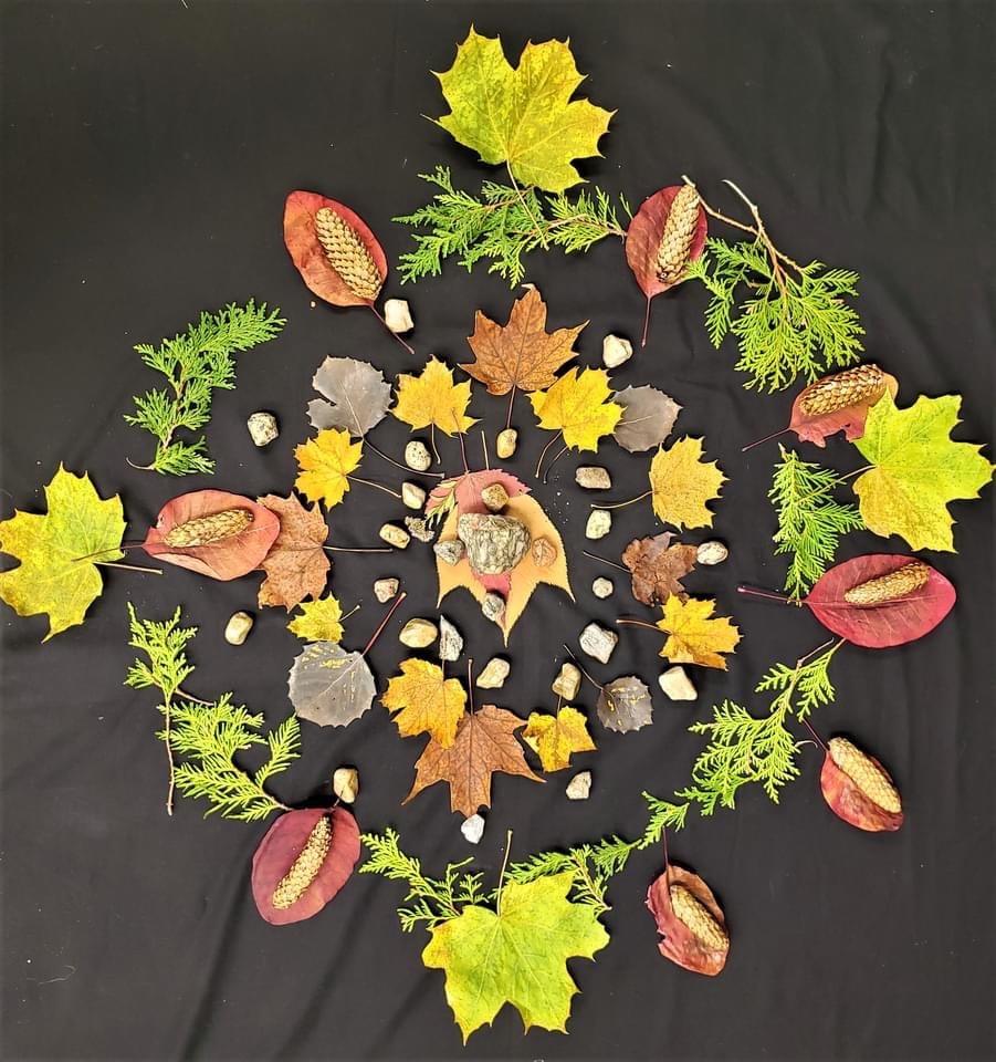 - Au retour en classe (ou à l’extérieur si à l’abri du vent), placer leurs éléments de façon harmonieuse et organisée pour créer un mandala (en équipe de deux ou trois). Une recherche ‘mandala nature’ sur votre moteur de recherche vous offrira de nombreux exemples.