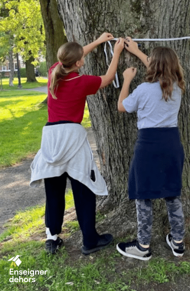 - On se déplace au parc et on distribue un ruban à mesurer souple et un ruban à mesurer par équipe.