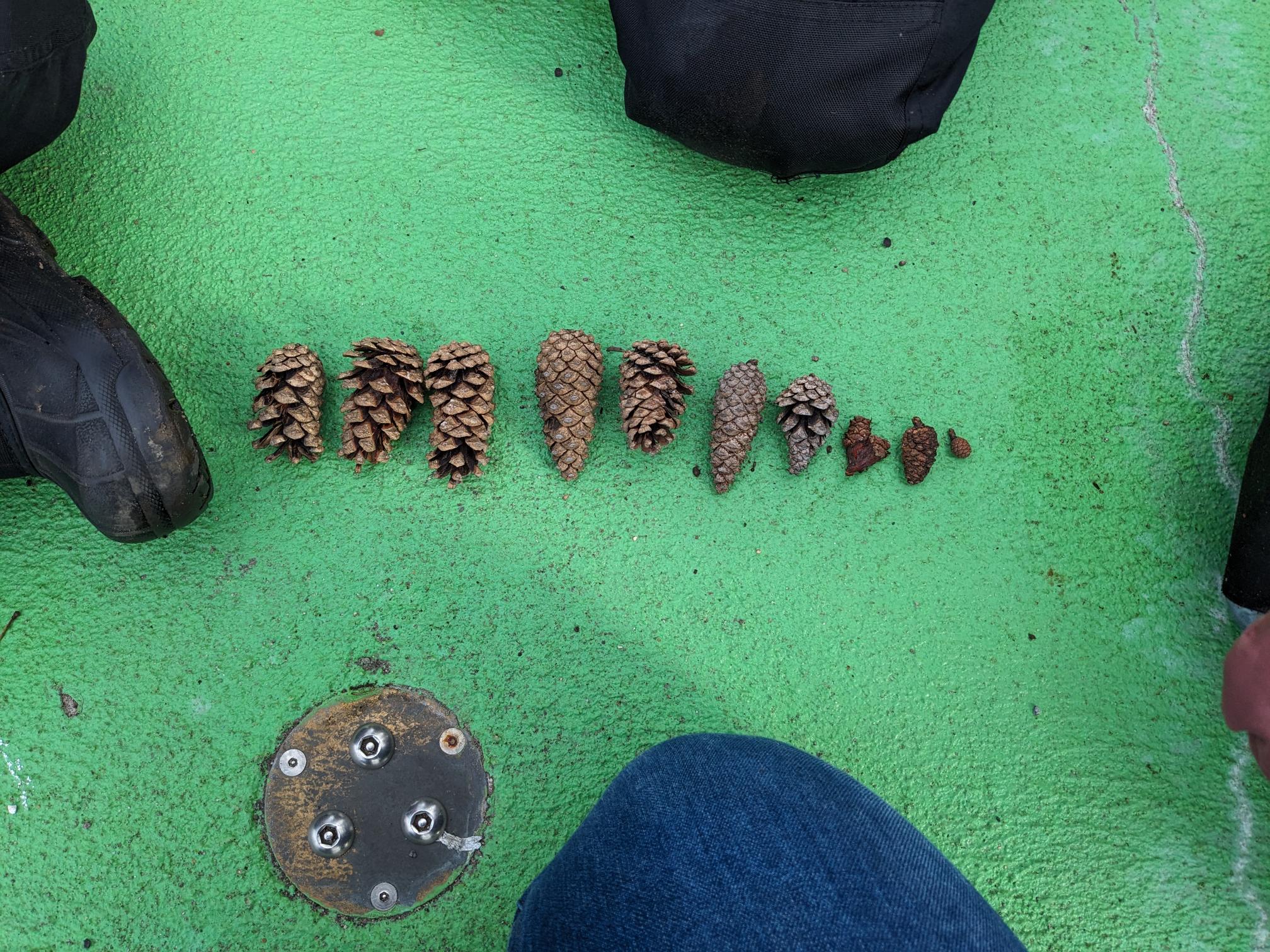 - Les élèves partent en équipes pour chercher le plus d’objets naturels possible dans le parc. Leur accorder environ 10 à 15 minutes pour cette tâche. Ils doivent trouver le plus d’un même élément de tailles différentes et les mettre dans leur bac.