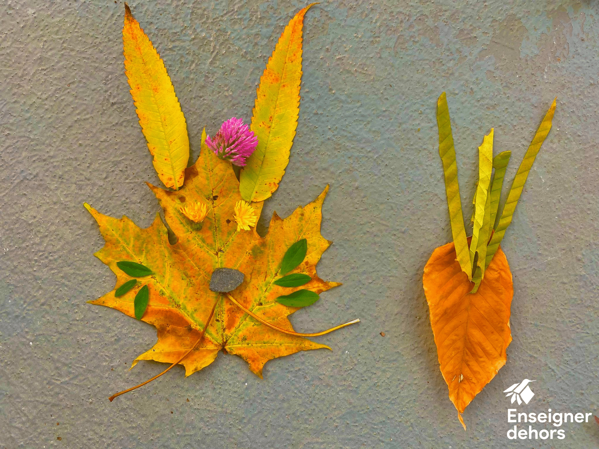 - Si l’activité se réalise dans une cour où il y a peu d’éléments naturels, prévoir la mise en place d’un croque-nature (bacs avec des éléments de la nature préalablement collectés) Par exemple, des feuilles, des branches, des cocottes, des roches, etc. Ces bacs pourront être par la suite réutilisés pour d’autres activités.